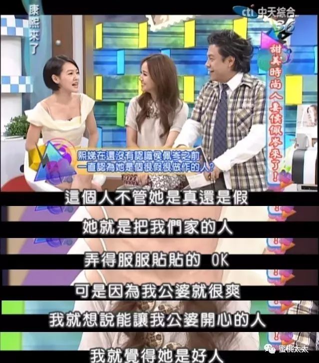 侯佩岑到小S家做客,进门之后,和小S的公婆打过招呼,就说,你们真的娶到好媳妇;你老公真的好棒;你们真的好幸福……