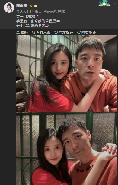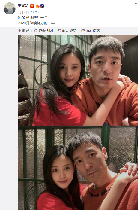 1月1日,李光洁深夜晒出一张和太太隋雨蒙的合