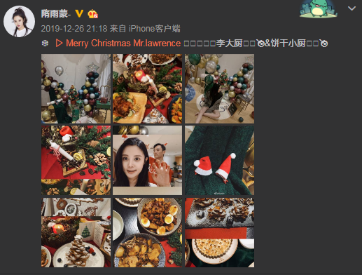 圣诞节也出现在隋雨蒙的动态里,两人一起做圣诞大餐,还卖萌自拍,可见婚后感情不错。