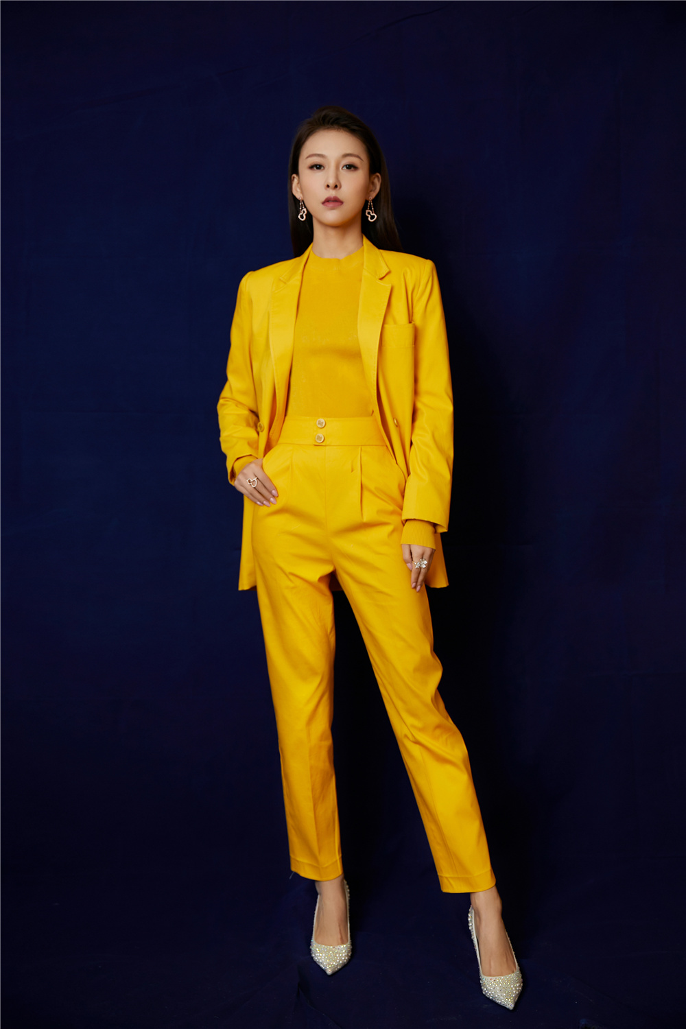 当晚,贾青一袭樱草黄西装亮相直播间,长发披肩别在耳后,造型利落干练,飒美亮眼,给隆冬增添了不少节日暖意。歌手出道、成功跨界演员,并在今年大胆创立自己品牌的贾青可以称得上典型的“斜杠青年”,对于多重身份,贾青表示自己一直是“行动派”,虽然会以演戏为重,但自己喜欢的东西都会去尝试去突破。