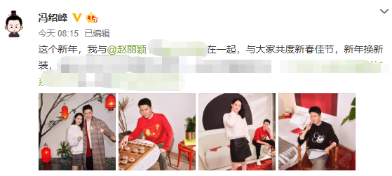 1月2日,冯绍峰个人社交平台上分享了一组与与爱妻赵丽颖的新年大片,并配文:“这个新年,我与赵丽颖在一起,与大家共度新春佳节,新年换新装,一起开启摩登新年!