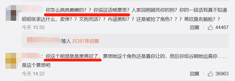 唐一菲随后也在评论区回应称这段文字是有感而发,没有注意用词,这才导致文章很不严谨,但是绝对没有说蒋欣不好的意思。