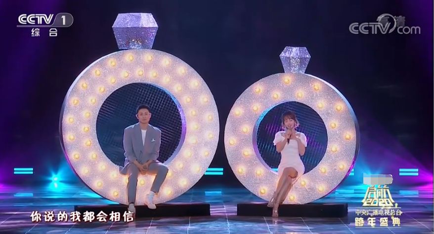 张嘉倪和老公买超首登央视晚会,没先到买超的歌声还真是不错,张嘉倪跟买超卖萌的眼神中,满满都是爱意。