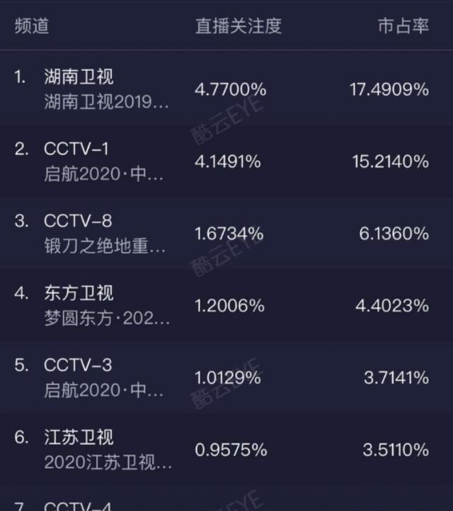 截止目前为止,湖南卫视跨年直播的收视率可以说是遥遥的领先,处于第一名的位置。