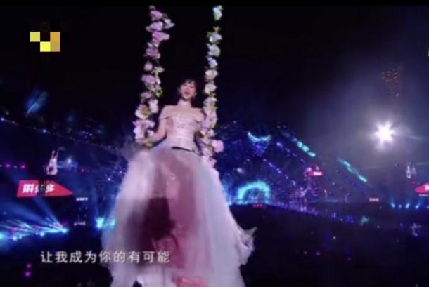 在跨年现场,杨紫可以说是备受重视,湖南卫视为了搭起了高空秋千,杨紫穿着印花礼服坐在花瓣秋千上凌驾于半空之中,仿如仙女下凡。