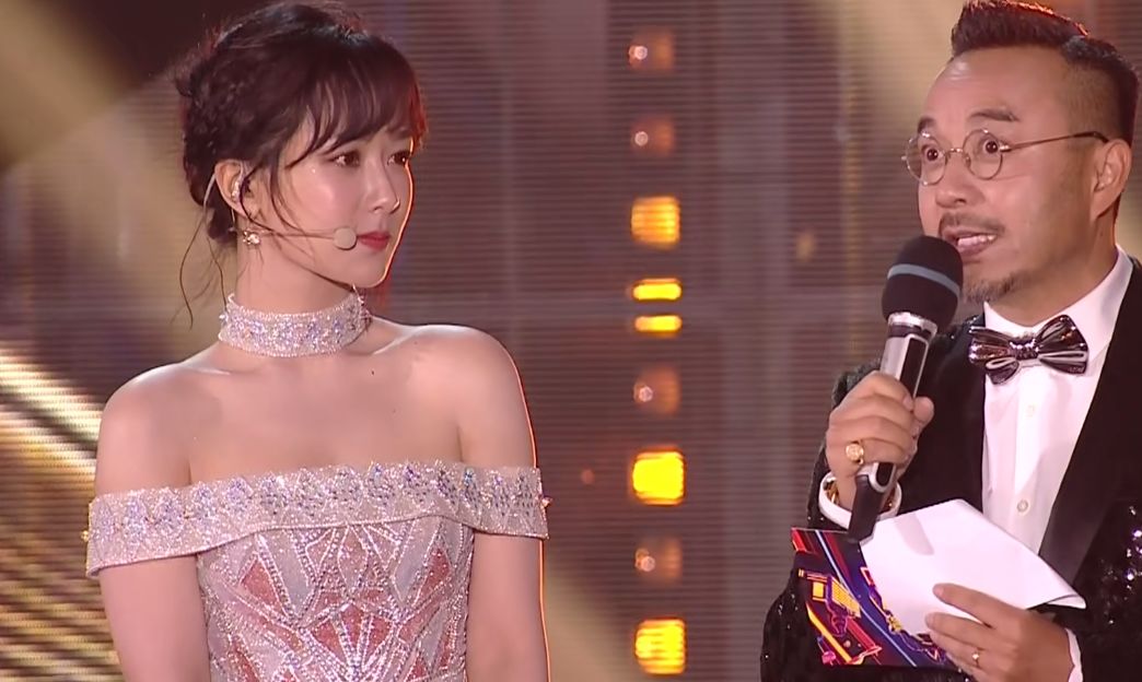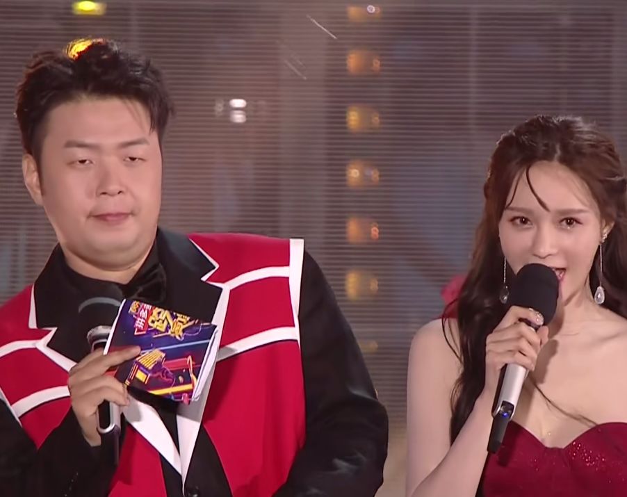 之后她又小小的客串了一把主持人,站在穿着西装的何炅旁边,感觉杨紫都被冻得耸肩了。真可以称得上“美丽冻人”了!