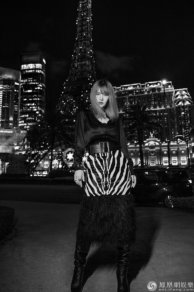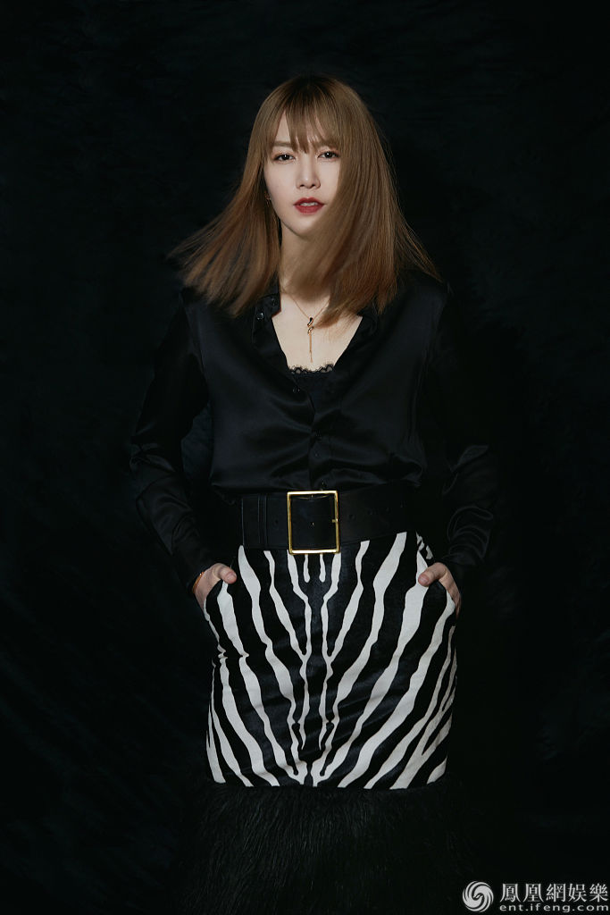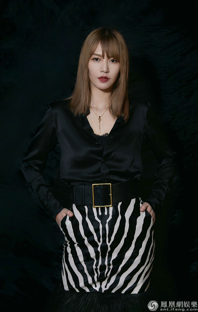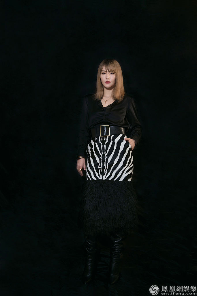 谭维维身穿黑色衬衫搭配斑马纹羽毛裙又美又飒,在暗夜中美成一道光。
