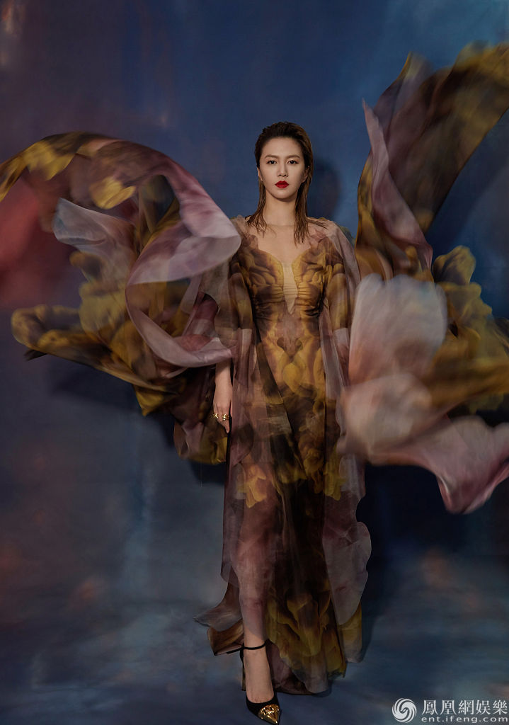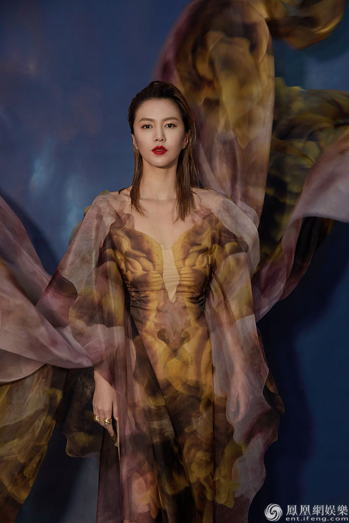 谭维维身穿光影锦鲤裙气场与轻盈并存,飘逸的轻纱长裙,图案如水墨晕染,像一条灵动的锦鲤。