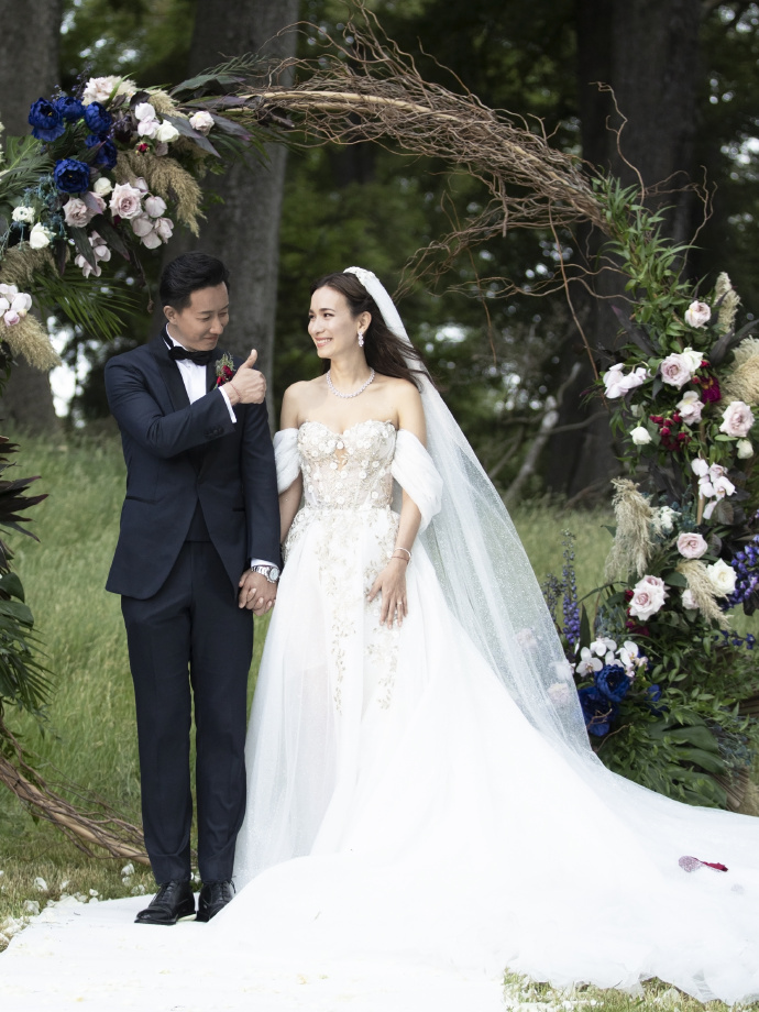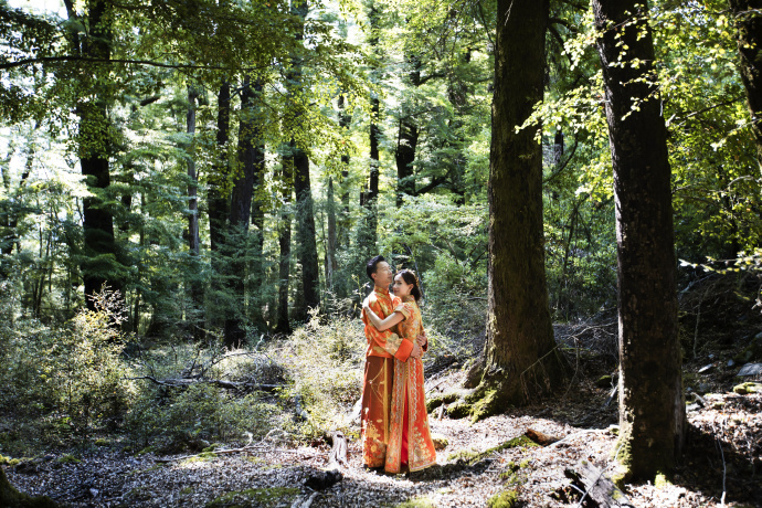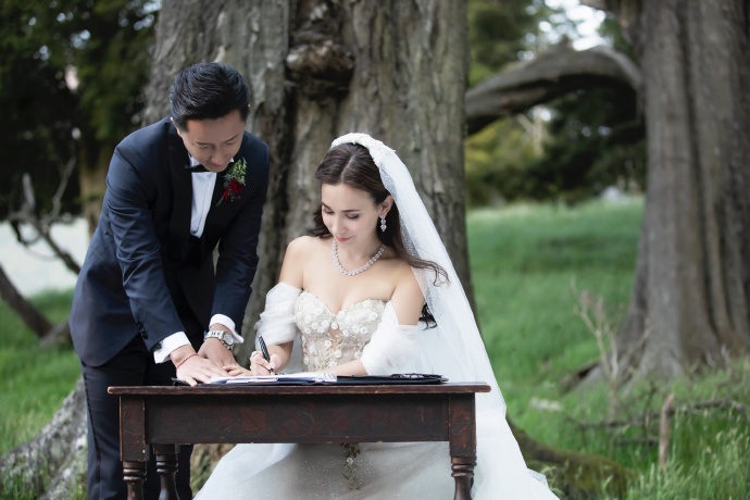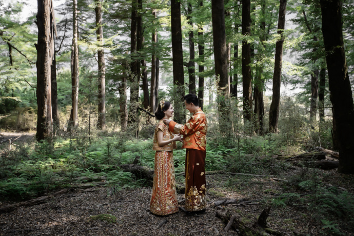 据悉,婚礼仪式在新西兰皇后镇郊外的一处森林里举行,两位新人在中国传统婚礼后换上礼服婚纱,在森林中让大自然见证爱情的美好与纯粹。