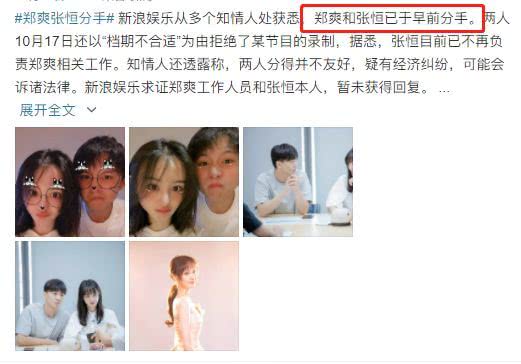 没有丝毫的预兆,#郑爽张恒分手#的tag就被各大媒体转载。并且宣称据知情人透露,两人早已分手,并有经济纠葛。