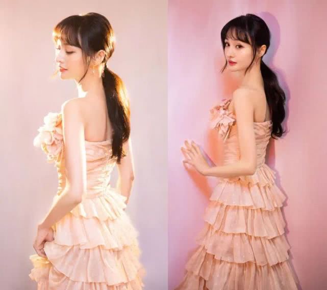 再看看当天郑爽的造型,一身抹胸粉色蛋糕裙,甭管啥蝴蝶背、直角肩...都完美的呈现了出来。