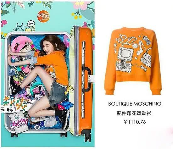 先穿着MOSCHINO连衣裙和卫衣,拍了一组综艺《花儿与少年第二季》的宣传照。