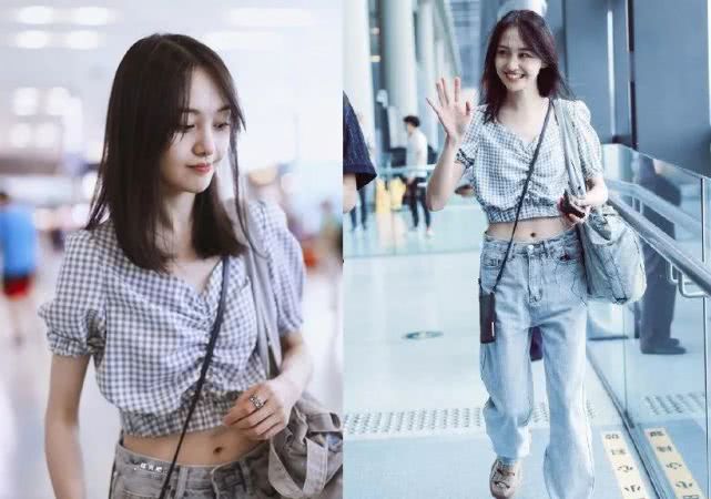 特别是这件泡泡袖露脐格子上衣,即减龄又凸显身材。