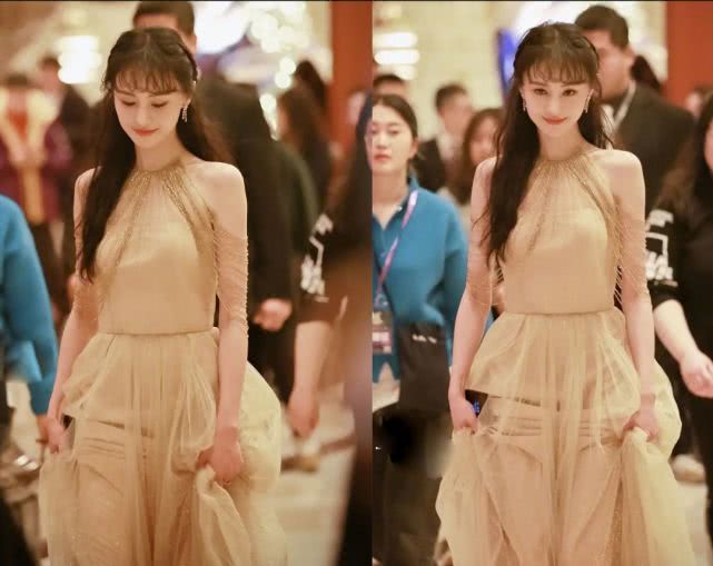 一抹金色露肩长裙亮相,并且还获得“年度硬核风尚人物”。