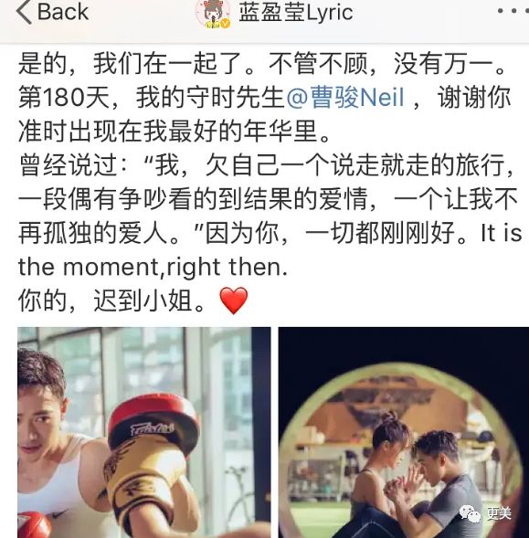 在感情方面,蓝盈莹也延续了一贯的直性子作风:大方公开。