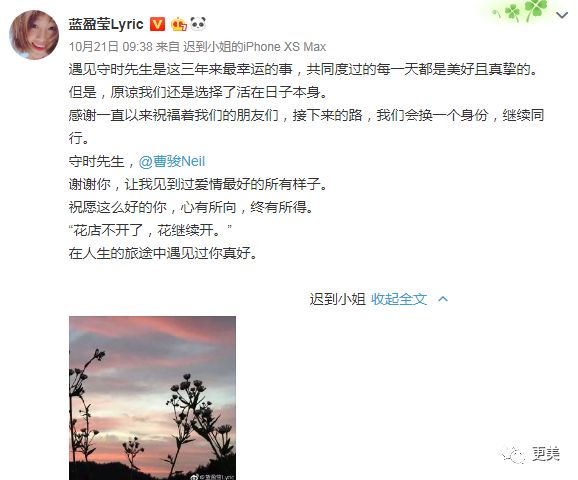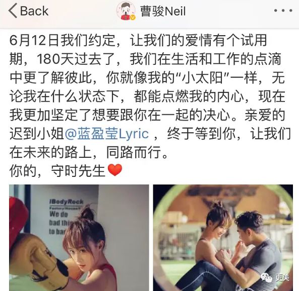 不仅是情侣头像情侣ID,微博小尾巴也是守时先生&迟到小姐,学英语的app上叫曹毛毛和蓝囡囡,微博评论里也见过他俩互叫毛毛&囡囡,这波狗粮可真是猝不及防。