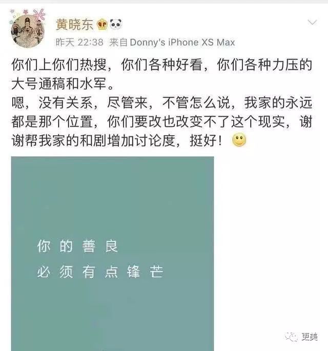 于是,作为一番蓝盈莹的经纪人黄晓东站出来说话了: 你们上热搜,你们好看,你们各种艳压,通稿和水军齐上阵,那也改变不了我家的位置啊 。