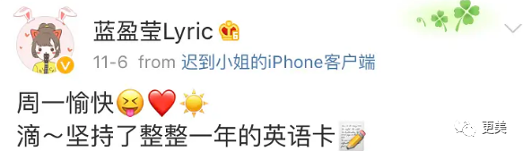 一起每天在app上学习英语,貌似是蓝盈莹先开始的,比曹骏早一周左右。