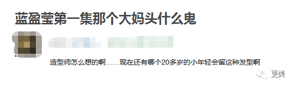 其实这件事也不能全怪朱珠,毕竟蓝盈莹第一集出来的造型就……雷翻了一众观众,哪个20多岁的小年轻会留这种大妈头呢?