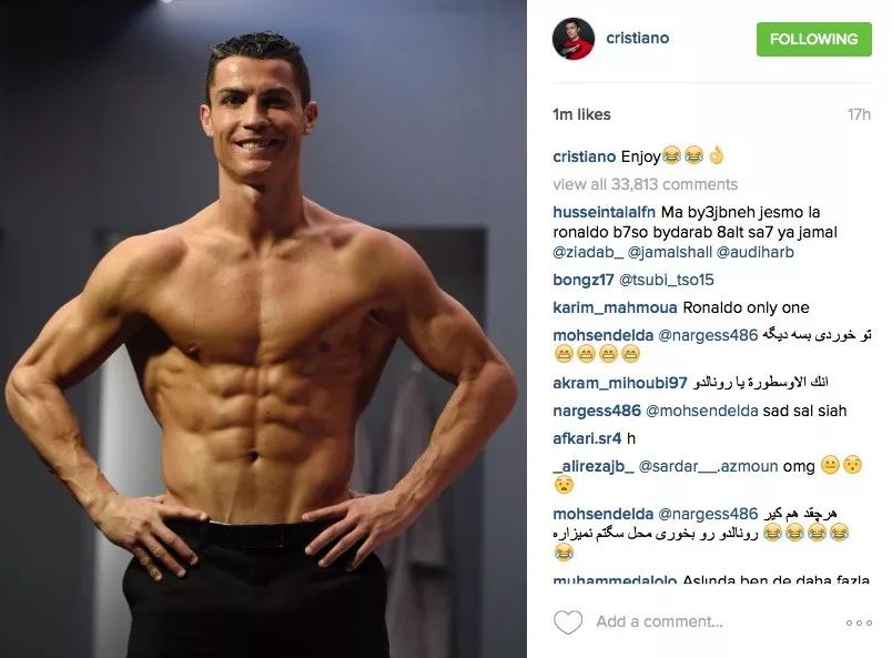 媒体还粗略计算了一下,C罗每在ins上发一张照片或一条视频,就会有97.5万美元的收益,相当于681万元人民币轻松入袋。