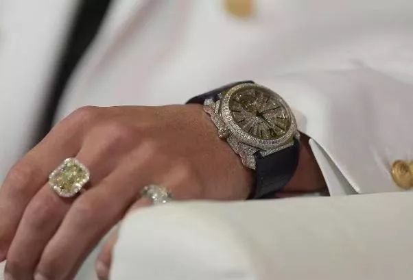 除了这些名贵配饰之外,这次去迪拜C罗还戴了价值千万的钻石手表。