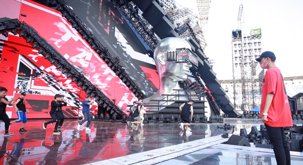 除了主打用奋斗点亮幸福的主题,舞美也是一绝,科技化十足的360度全景四面台舞美,极具设计感。