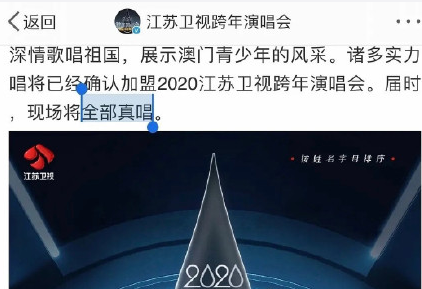 今年的跨年,江苏卫视更是将“现场全部真唱”写在宣传文案中,让人直呼霸气十足!