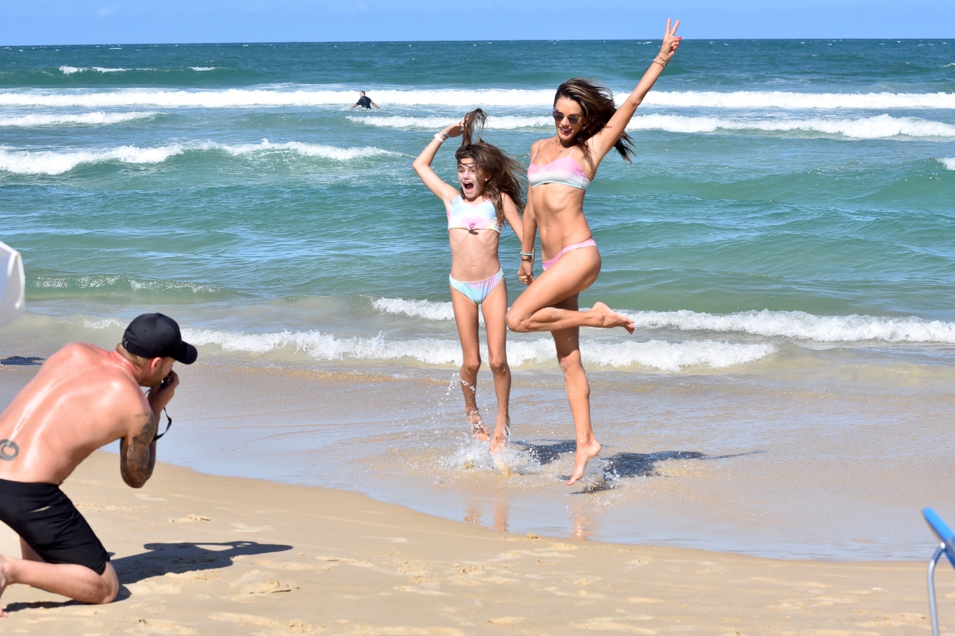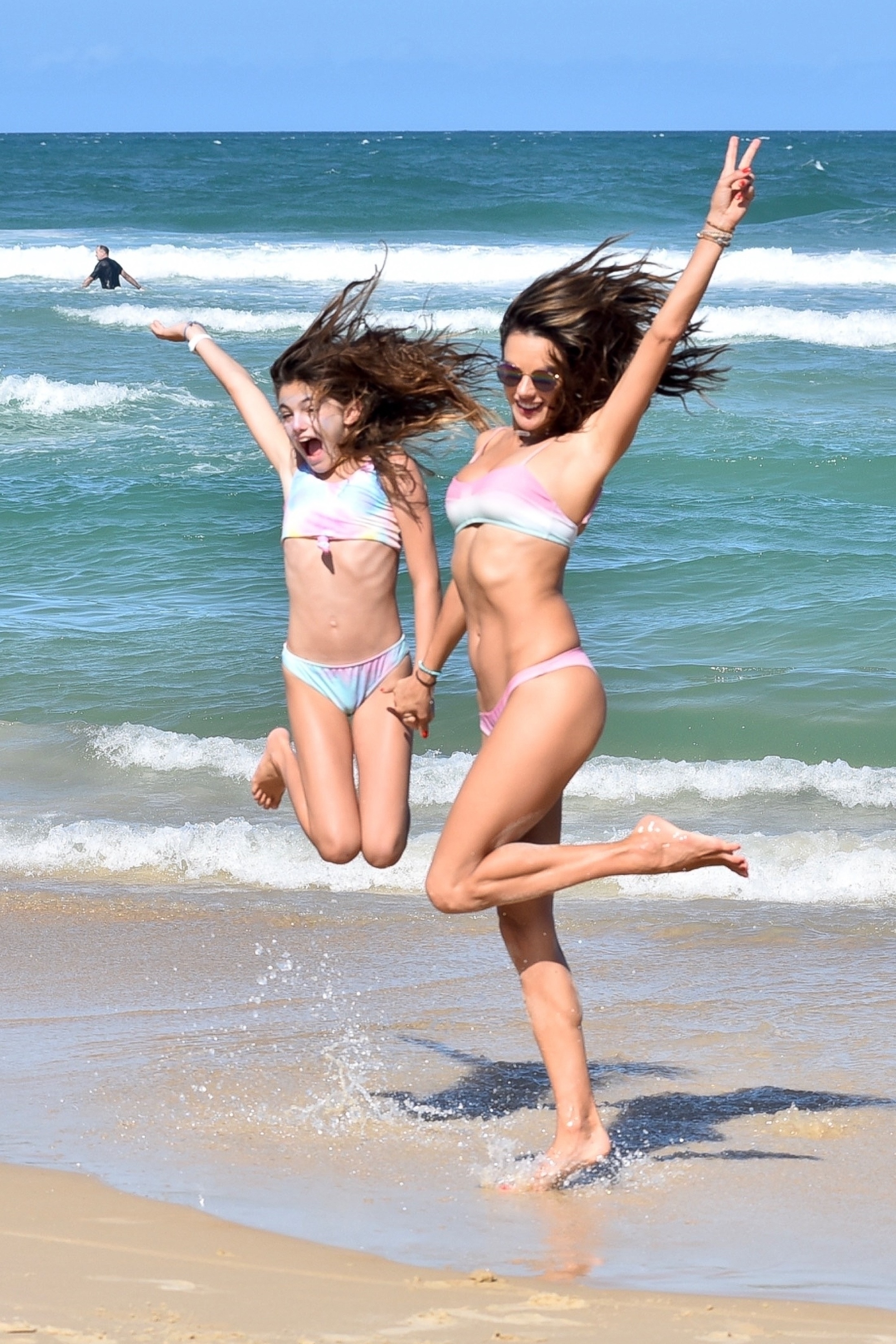 12月30日,巴西,亚历山大·安布罗休(Alessandra Ambrosio)与现任男友尼古拉·奥德迪(Nicolo Oddi)带女儿现身海滩度