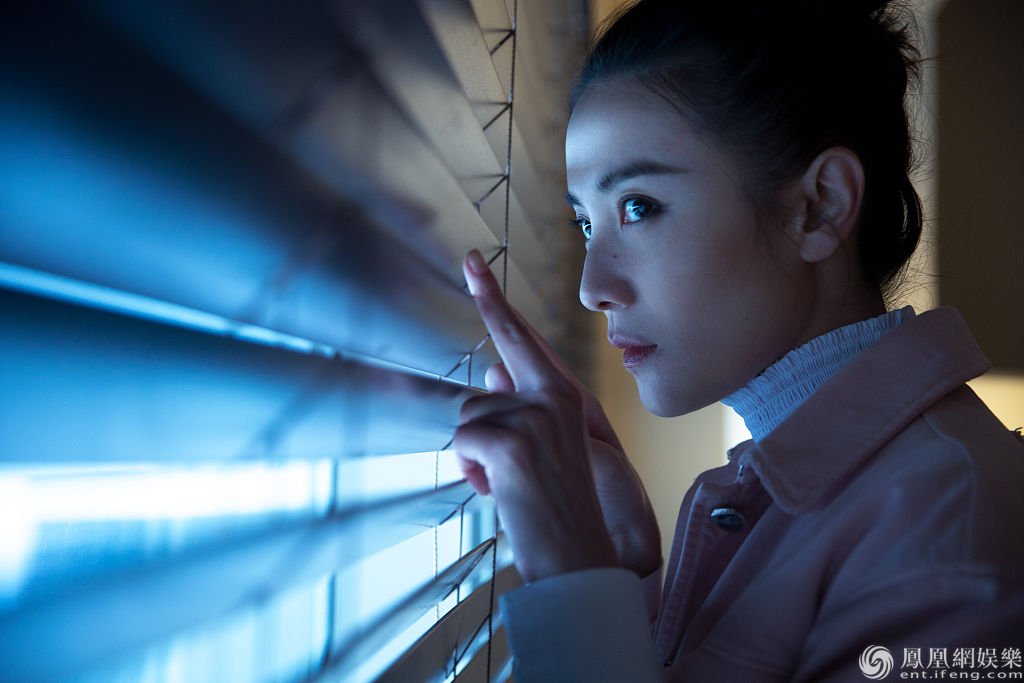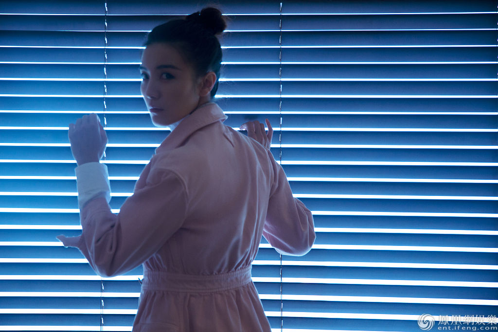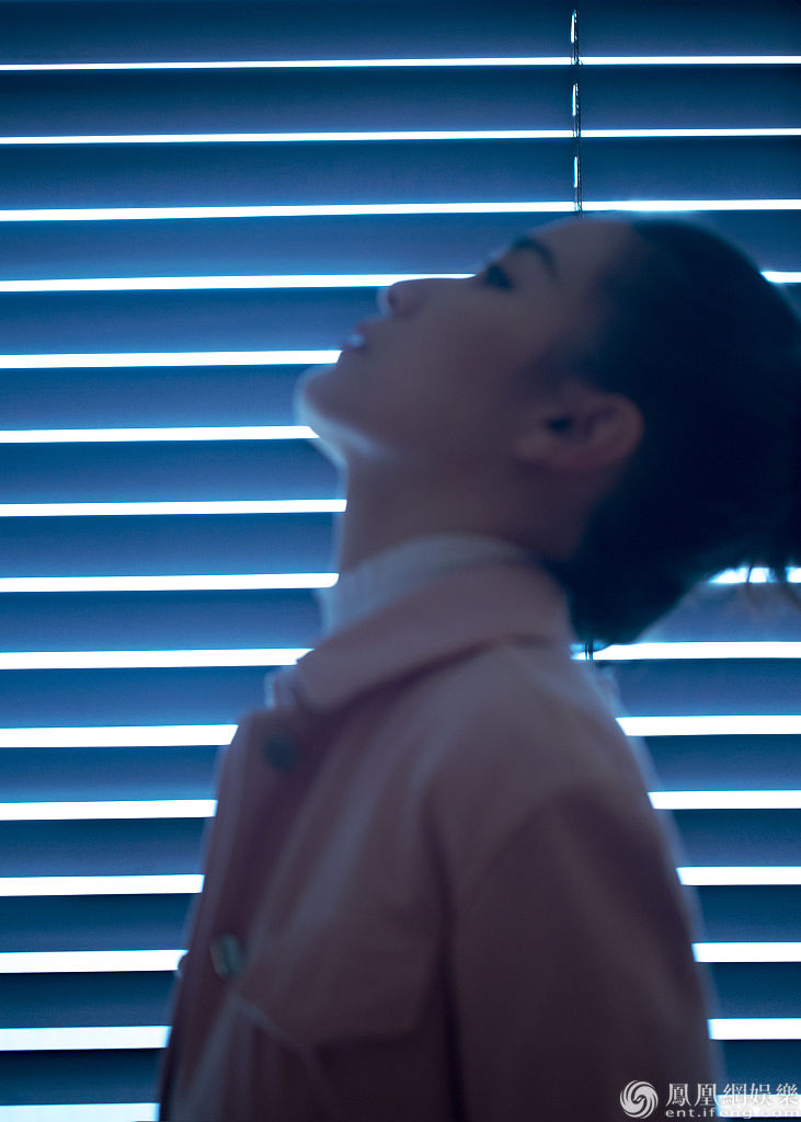 透过百叶窗看向外面的世界,眼神灵动朦胧,以独具个性的镜头感恣意展现多变的时尚表现力。