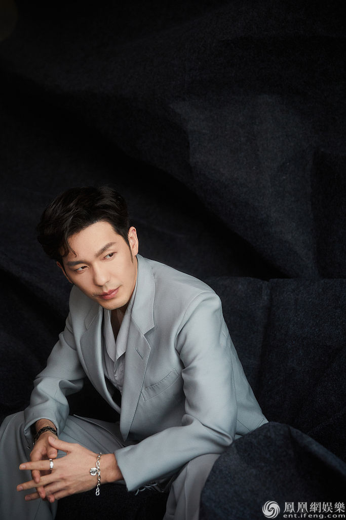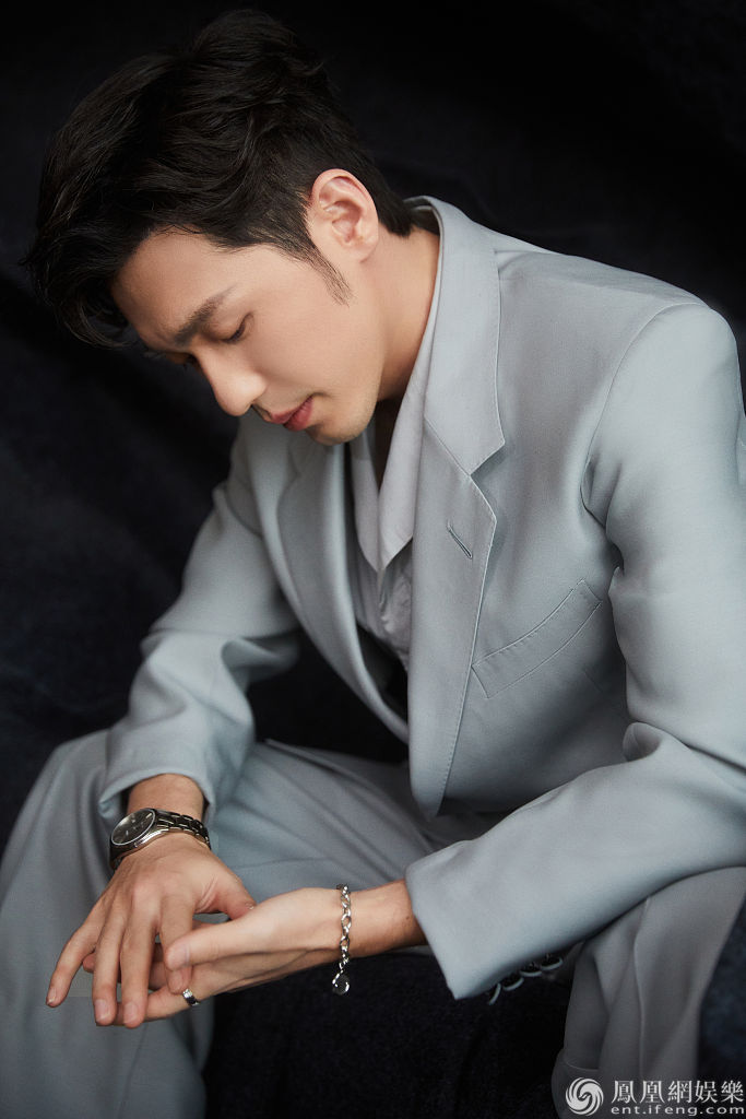 白宇身穿浅蓝色西装演绎冬日慵懒文艺风。