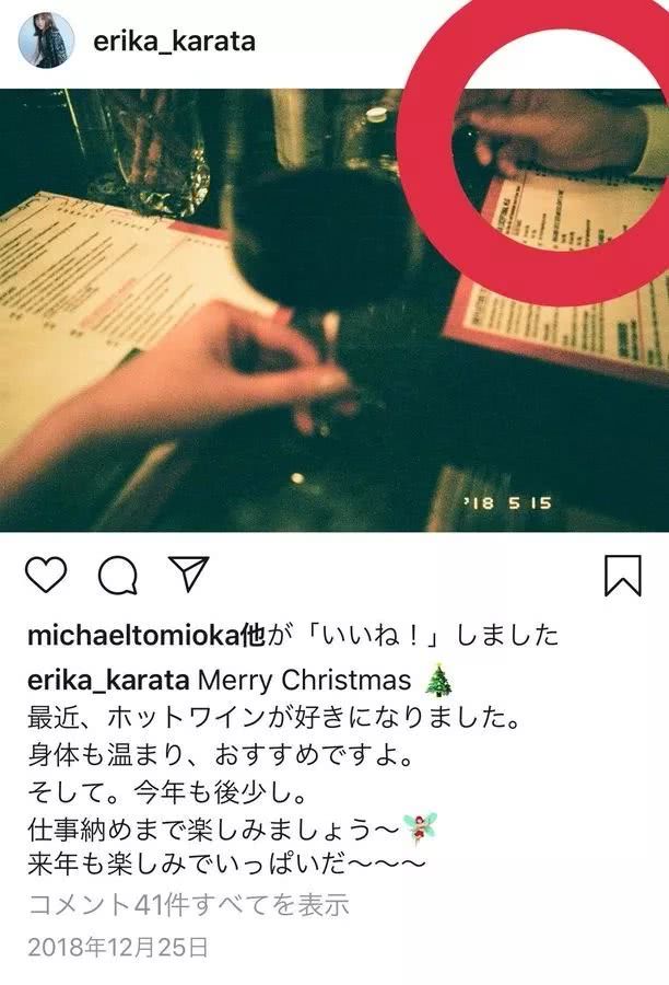 2018年圣诞节当天,唐田个人社交平台发布了一张自己拿着酒杯的图,右上角某男性的右手也一同入境,配图文案是:“圣诞快乐,最近喜欢上了热红酒,身体变得暖和了,也推荐给大家哦”。