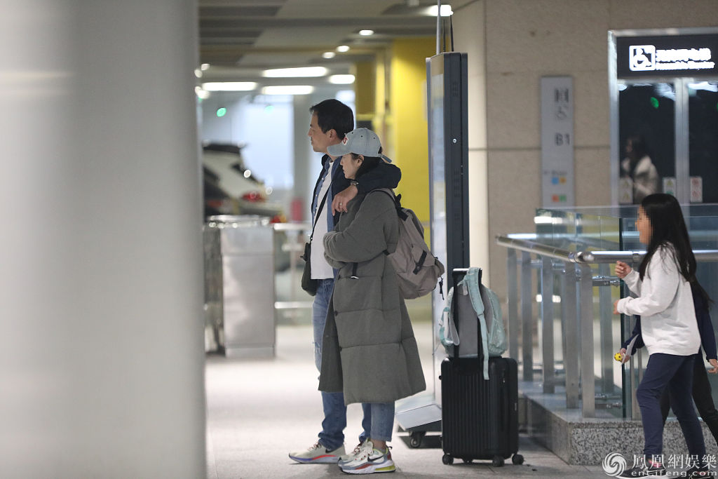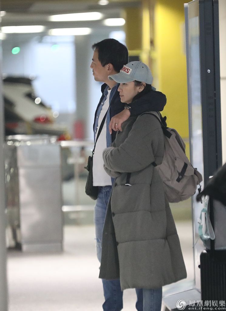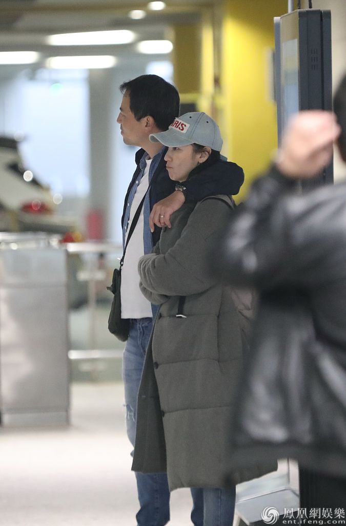 林熙蕾获老公搂肩等车动作亲昵。