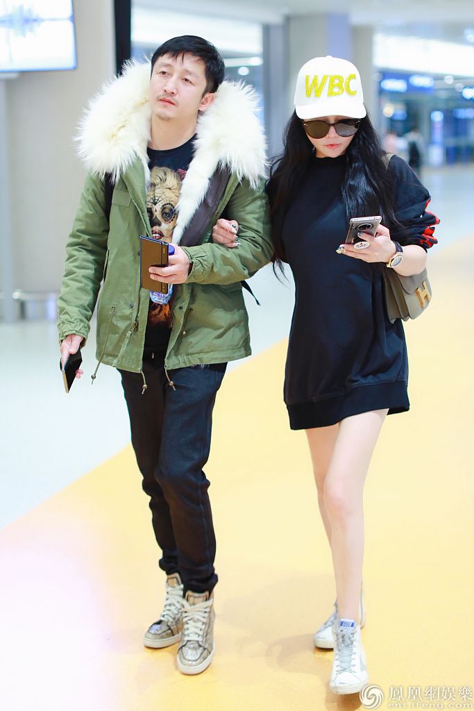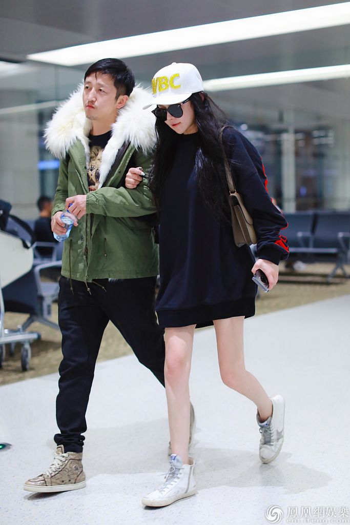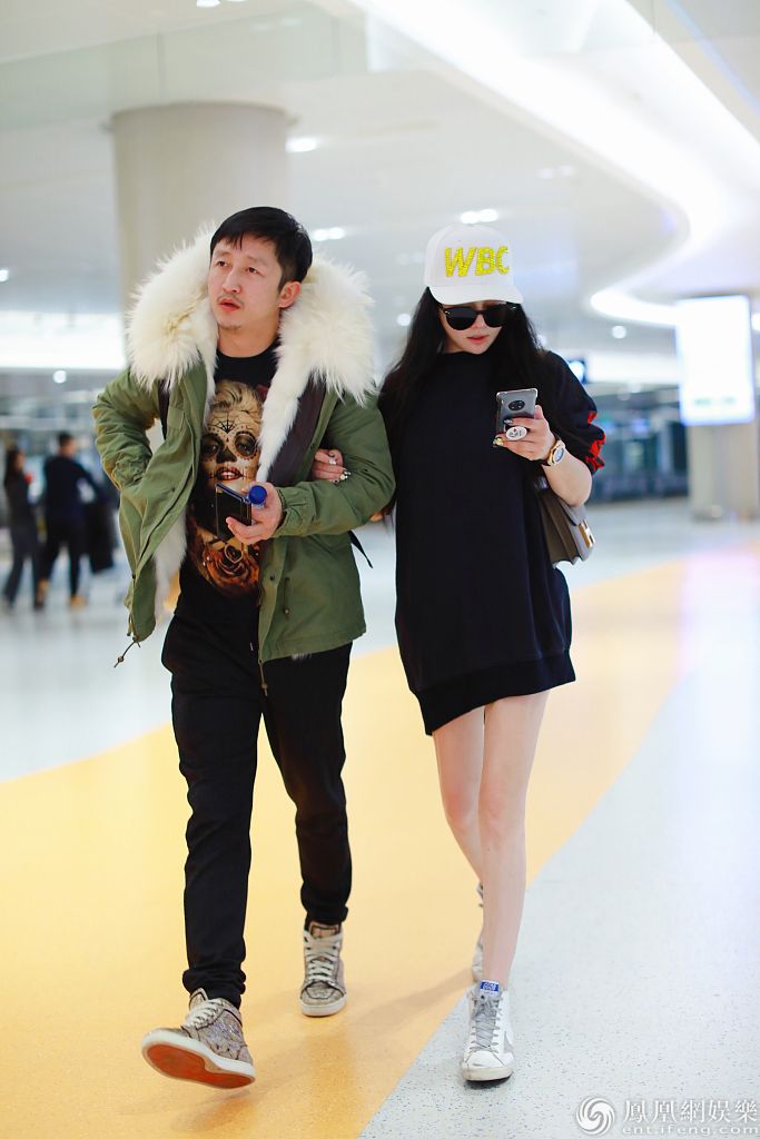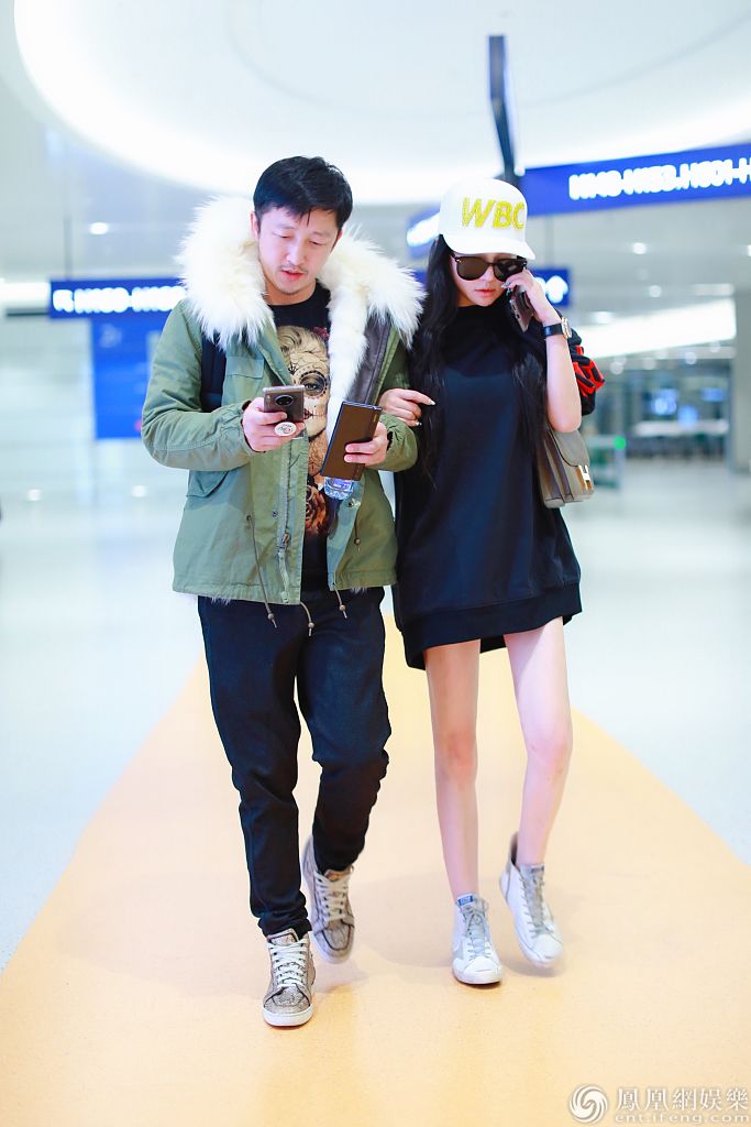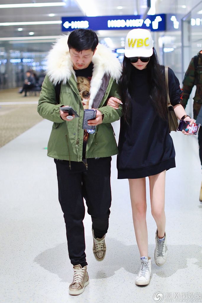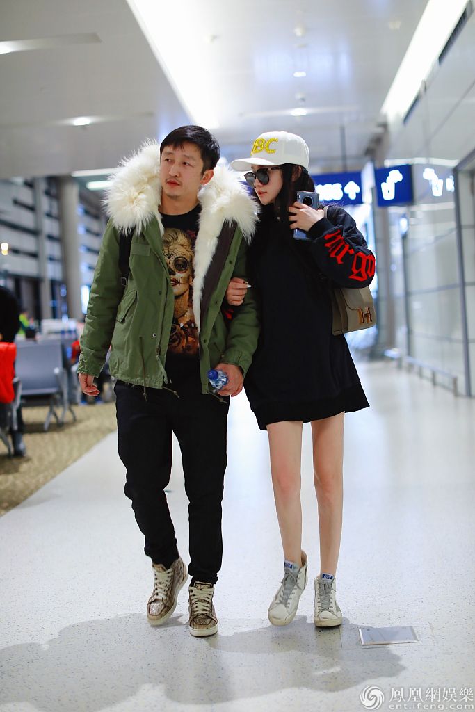 2019年12月29日,上海,冉莹颖、邹市明夫妇现身机场。冉莹颖冬日玩“下衣失踪”大秀美腿,身材纤细惹人羡慕,与老公邹市明挽手并肩甜蜜十