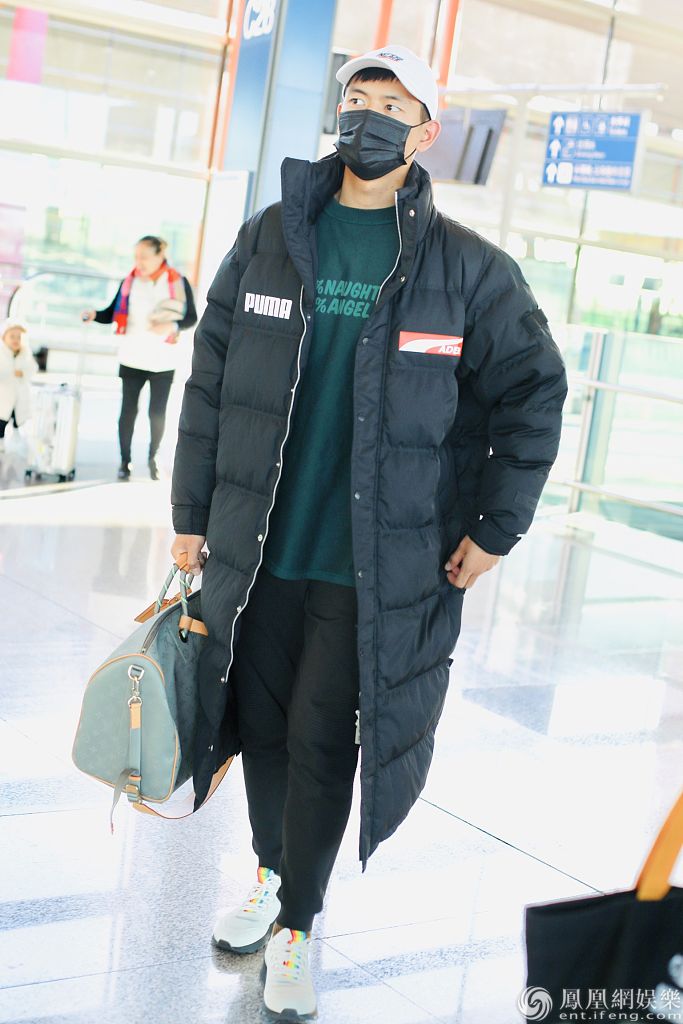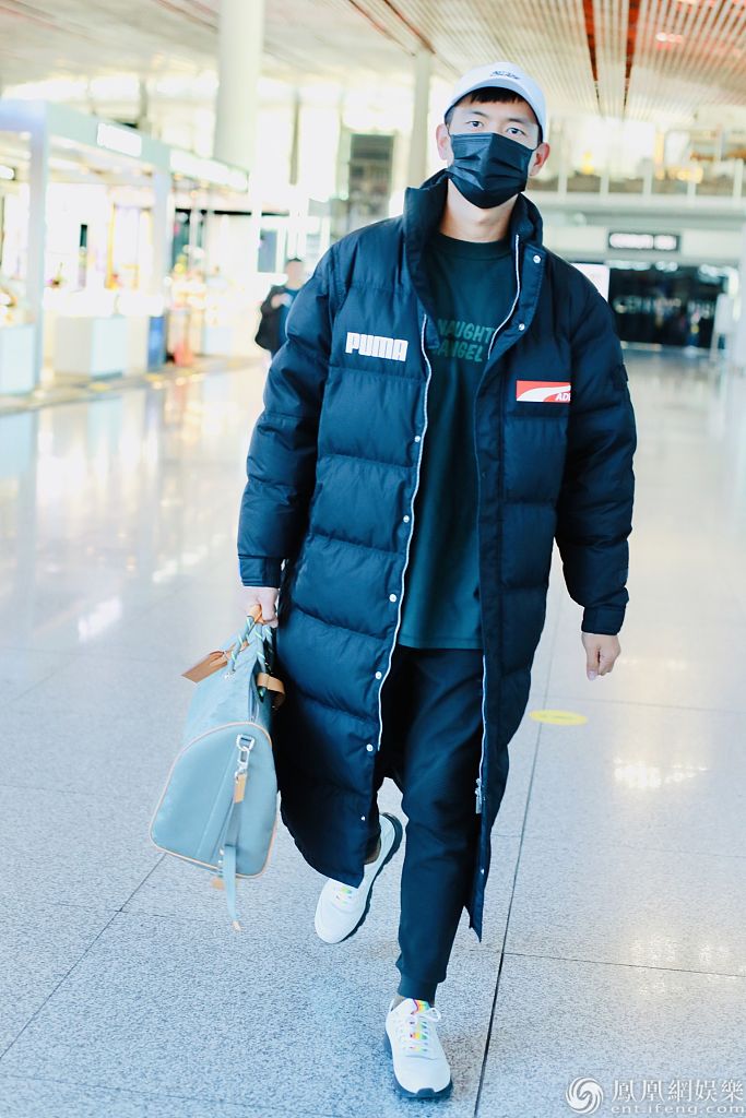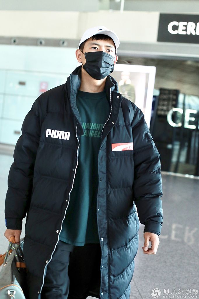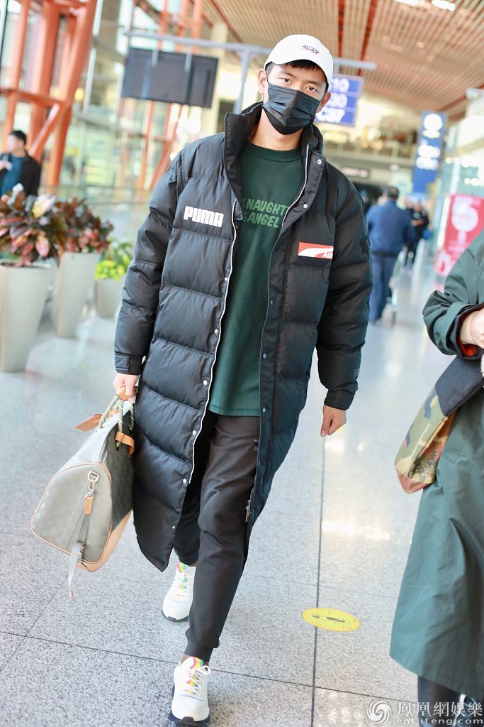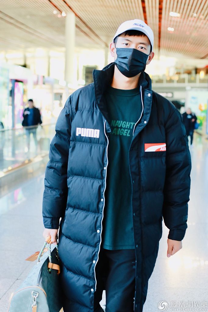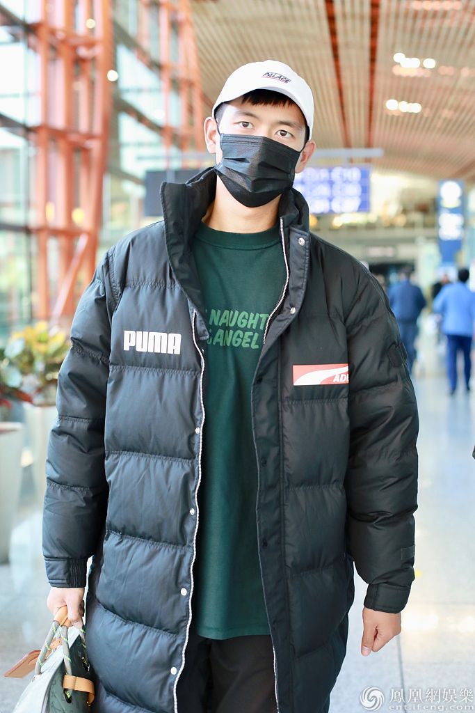 2019年12月29日讯,日前,李现现身北京机场。他戴着口罩难掩帅气面容,头戴棒球帽身穿羽绒服,身材高大挺拔,拎包赶路步伐潇