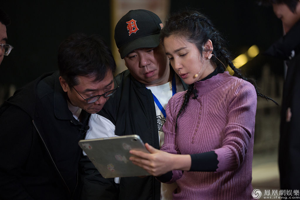 李冰冰和工作人员对戏。