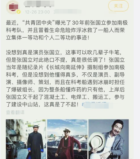 12月27日,有媒体曝光了张国立1988年救南极救科考船并立下二等功的事迹,在网上引起热议。