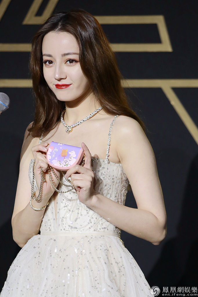 迪丽热巴撩发秀红唇气质绝佳。