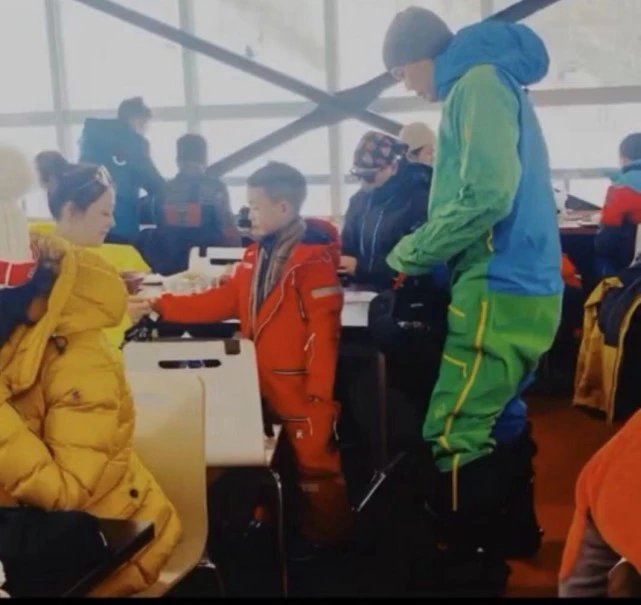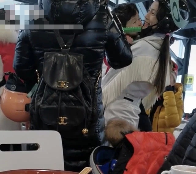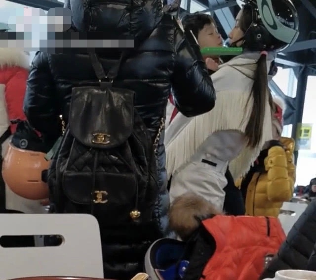 网友拍到,baby出去滑雪时,baby妈妈就坐在陈小春一家附近,两家人应该有打招呼。