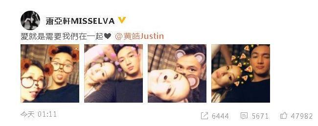 恋情公开后,萧亚轩和黄皓频频秀恩爱,不仅一起拍亲密写真,直播与男友接吻,还让男友担任新歌MV的男主角,总之狗粮撒不停,誓要将男友扶上位。