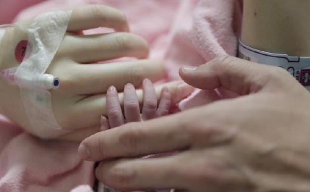 而另一张照片中,王阳明握着小宝宝的手,小宝宝则抓着妈妈的手指,画面相当温馨。