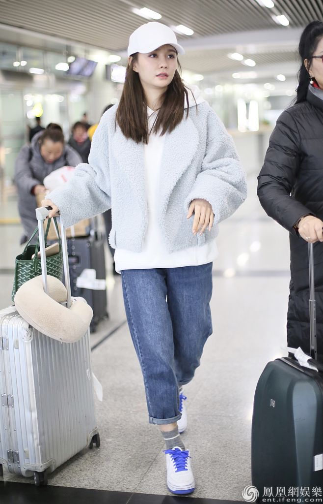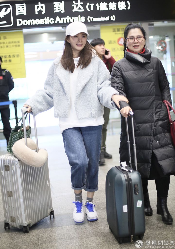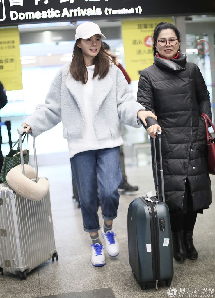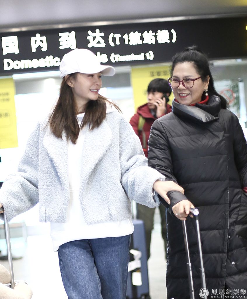 2019年12月25日,湖南长沙,沈梦辰与妈妈抵达长沙黄花机