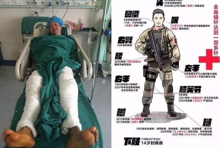 在吴京看来:受伤不过是武打演员的基本道德,不该拿受伤炫耀。他的底线高于许多同行的理想。