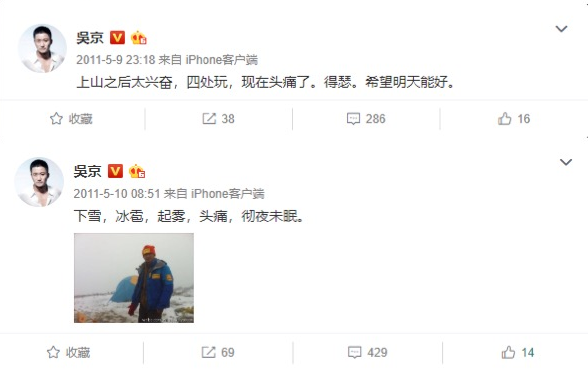 那会儿,吴京的微博基本上承载着他日记的功能,什么丢脸的经历和丑照都敢发。