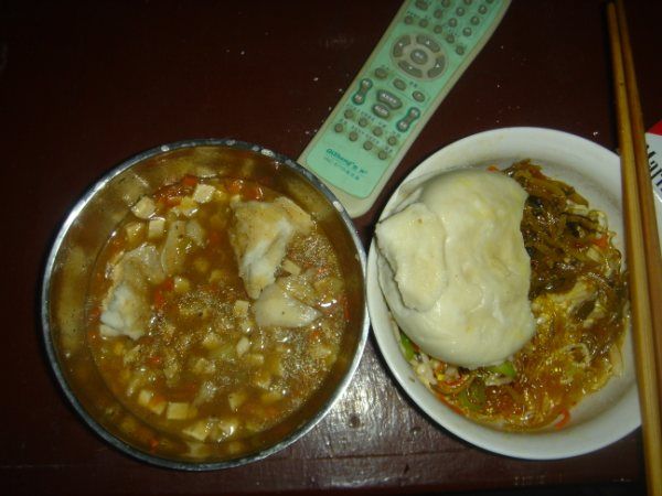 运动得太忘形,错过了庙里的晚饭时间,用俩馒头蘸着剩下的卤就着咸菜凑合一顿。