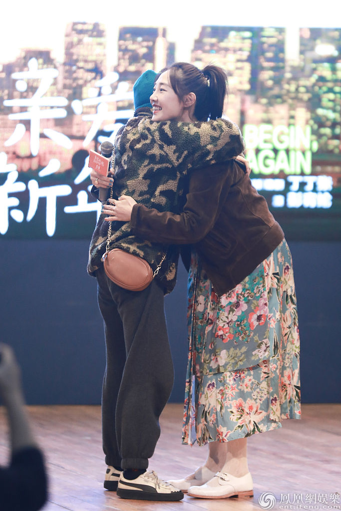 2019年12月25日,四川成都,白百何亮相《亲爱的新年好》电影路演活动。她身穿碎花裙扎着高马尾,外搭棕色上衣俏皮又可爱,白百何在舞台上与粉丝拥抱合影,秒变宠粉达