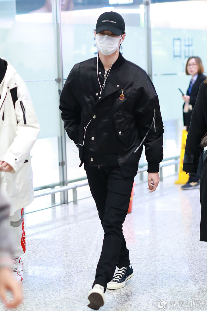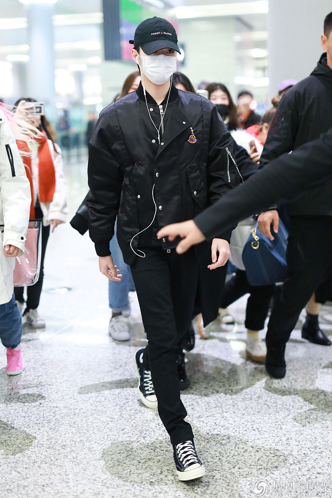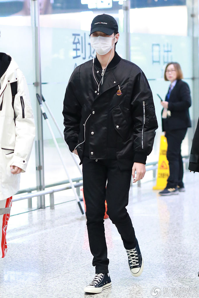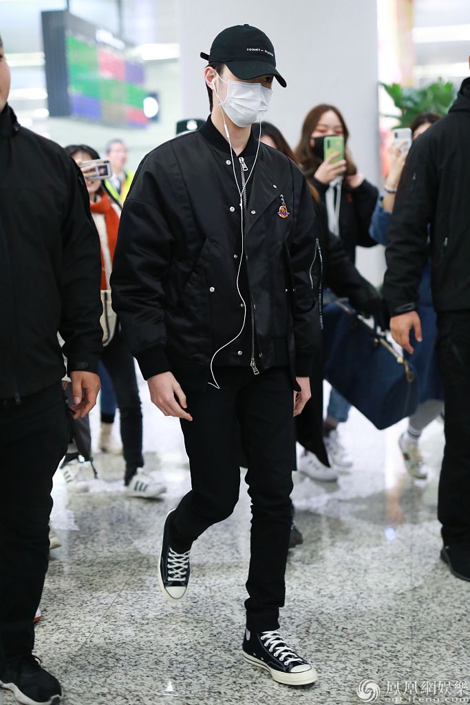 2019年12月25日,上海,赖冠霖现身机场。他戴棒球帽和口罩,穿一身黑色look现身,戴着耳机走路,满屏尽显大长