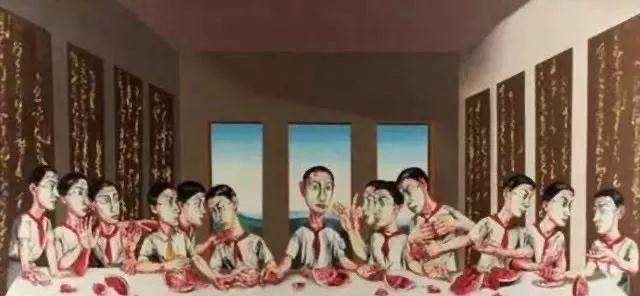 著名画家喻红的「自画像」就放在茶室的一张清末民初的楠木大漆椅上,走廊里面挂着季大纯的「二十、三十、四十」,这幅画2007年就价值700多万,除此之外门厅里还有一副刘野的作品「莫扎特」,另外,在画面中出现的曾梵志的「最后的晚餐」更是让人眼红,这幅作品曾经卖出1.8亿港币的天价啊!