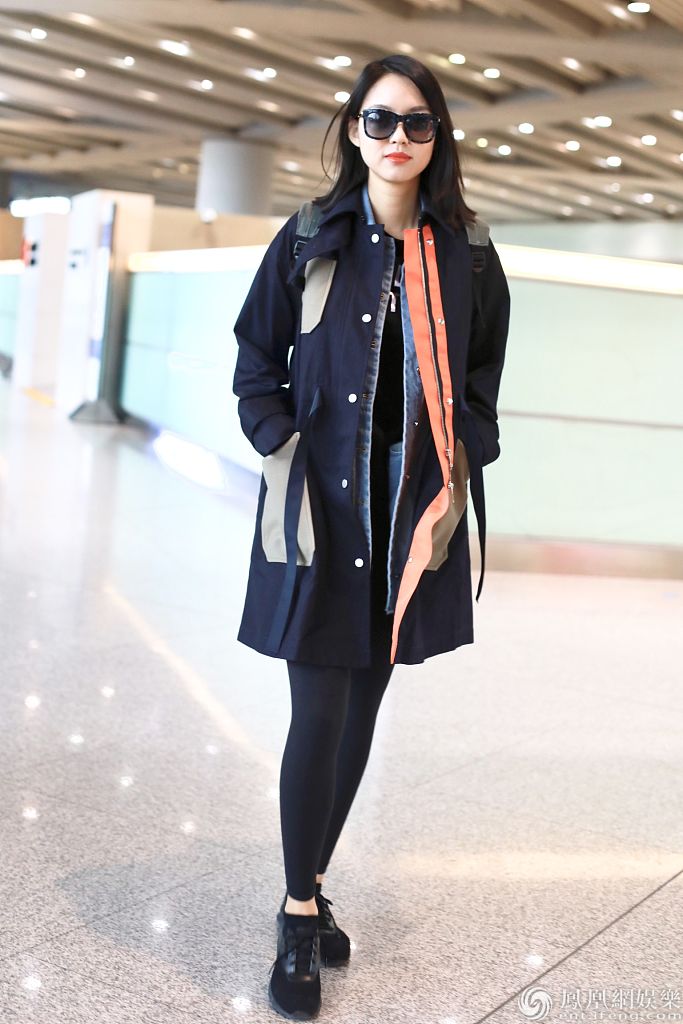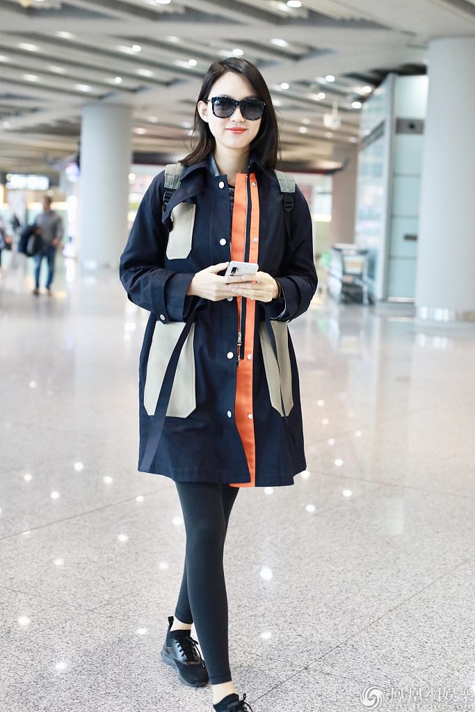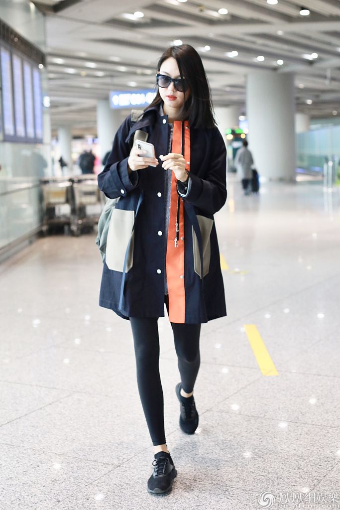 2019年12月24日,北京,张梓琳现身机场。她戴着墨镜,身穿拼色外套搭配紧身裤,大秀模特长腿画面养