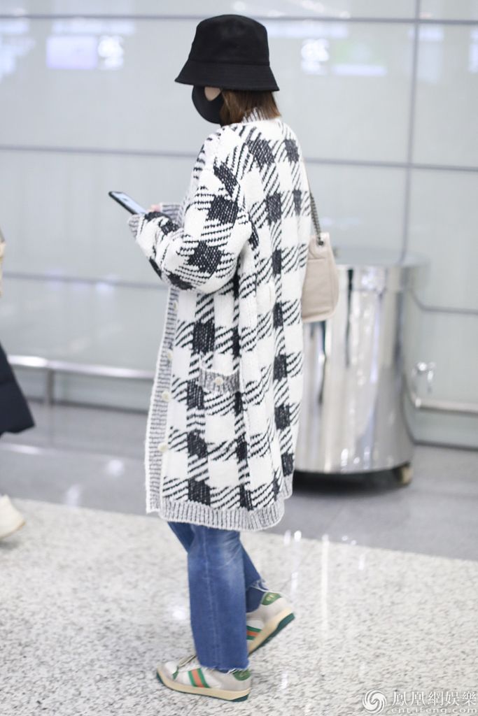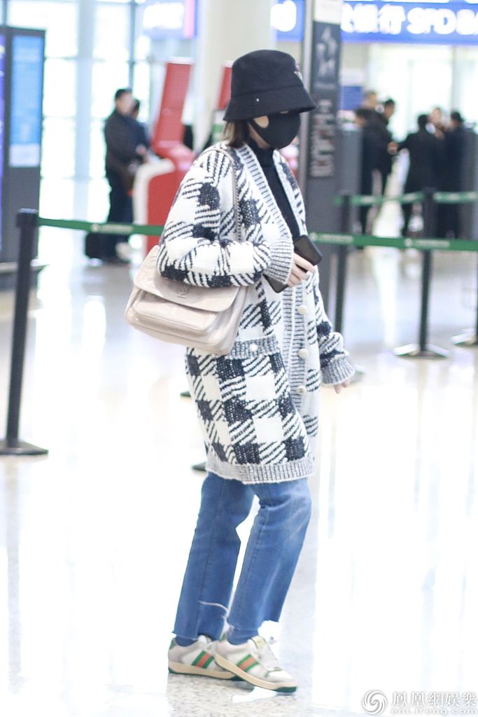 陈乔恩官宣恋爱后装扮清新似少女,身穿格纹衫配牛仔裤休闲,又不失时尚感。