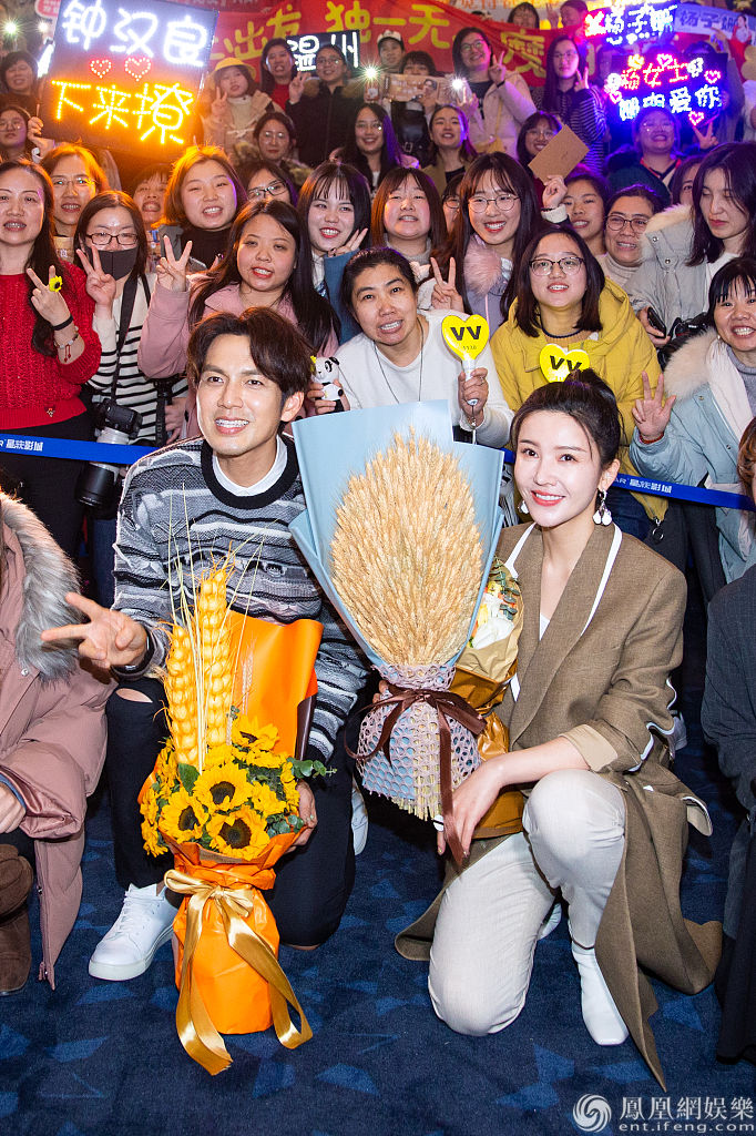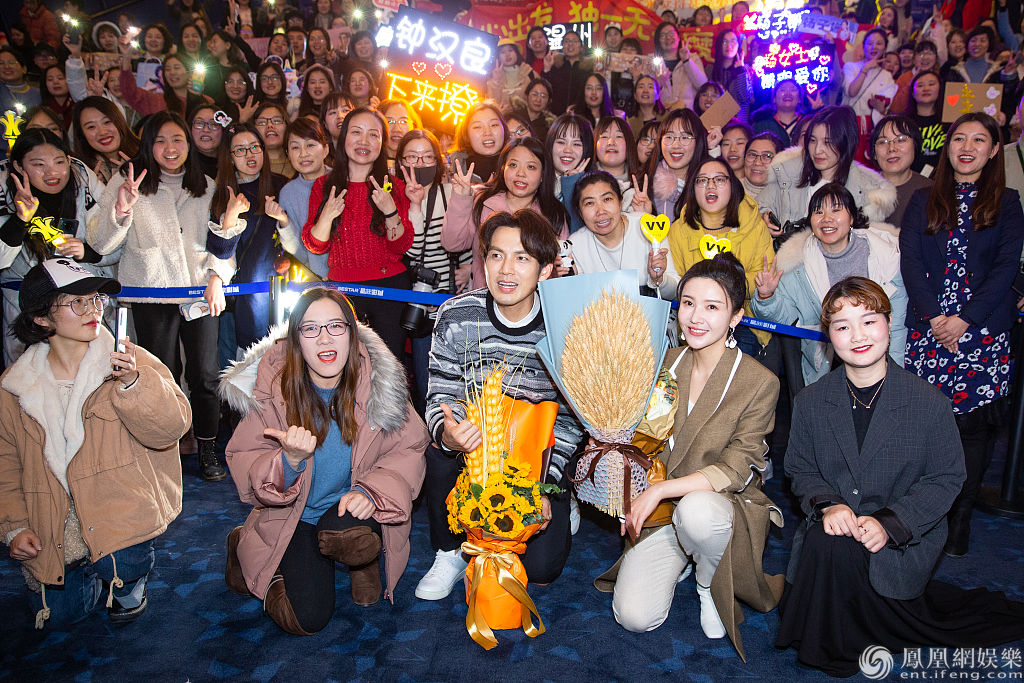 杨子姗、钟汉良与影迷合影。